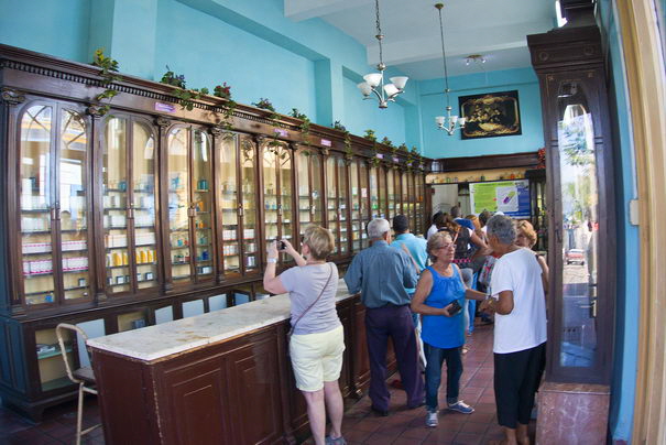 Eine Apotheke. Medikamente werden nur gegen Rezept und gegen den alten Peso ausgegeben. Das ist ein Ergebnis der staatlichen Kontrolle. Dieser Apotheke ist gut mit Waren und Medikamenten ausgestattet. An anderen Stellen sahen wir Apotheken, wo auf wenigen Regalbrettern nur vereinzelte Medikamentenschachtel lagen. Auch hier macht der Kubaner die Erfahrung, dass manche Medikamente eben nur gegen die “echte” Währung erhältlich sind.